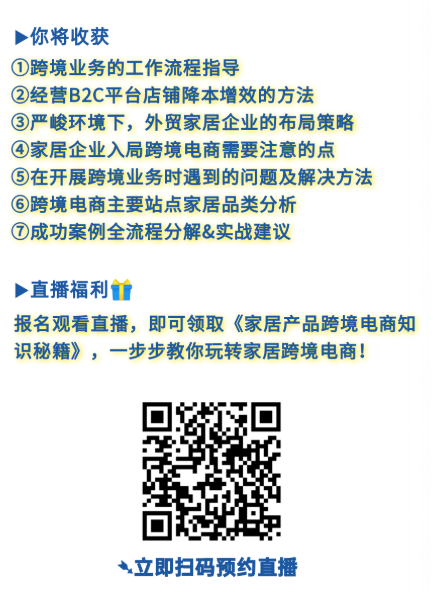 为广大外贸家具家居企业量身打造的“行业探索系列公开课-跨境电商专场”又将来袭。本次线上直播特邀中国国际家具展览会的战略合作伙伴,指定外贸B2B交易平台–大建云仓,以及e-Bay, 艾丽特思家居的5位行业打卡,带来他们各自的洞察和分享,为更多外贸家居企业解惑。